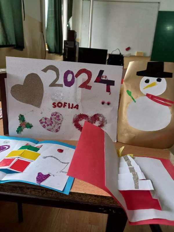 Поводом НОВОГОДИШЊИХ ПРАЗНИКА ученици другог и трећег разреда са учитељицом Љиљаном Бабић, правили су честитке и својим радовима украсили су учионицу.