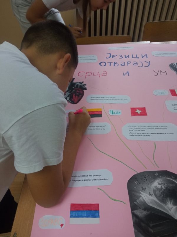 Поводом Европског дана језика, 26.септембра, наши ђаци су са наставницом енглеског језика, Горданом Мијаиловић, наставницом немачког језика, Иваном Перић и са наставницом ликовне културе, Љиљаном Стојнић, израдили креативне паное.